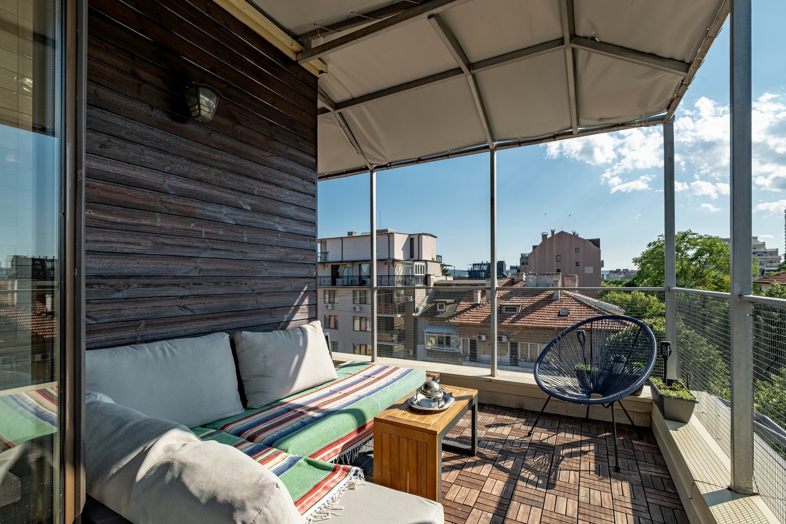 In this neat apartment you can feel the beat of Varna.You are on walking distance(5min)from all central restaurants,clubs,port of Varna,Summer theater,Festival Centre ,Varna roman baths,Cathedral Varna, Archaeological Museum. If you need of calmness,you can stay under the stars on the rooftop terrace.There is a workplace and a bar area.Тhe location is suitable for parents-it's a few steps from the children's corner in the sea garden and the beach.Тhe bus to the airport is 3 minutes away.
